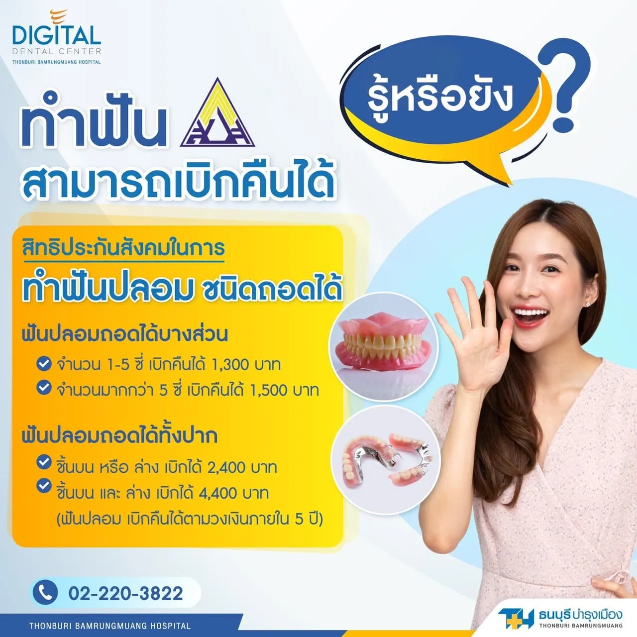 เบิกสิทธิประกันสังคมในการทำฟันปลอม ชนิดถอดได้ ณ ศูนย์ทันตกรรมดิจิทัล โรงพยาบาลธนบุรี บำรุงเมือง