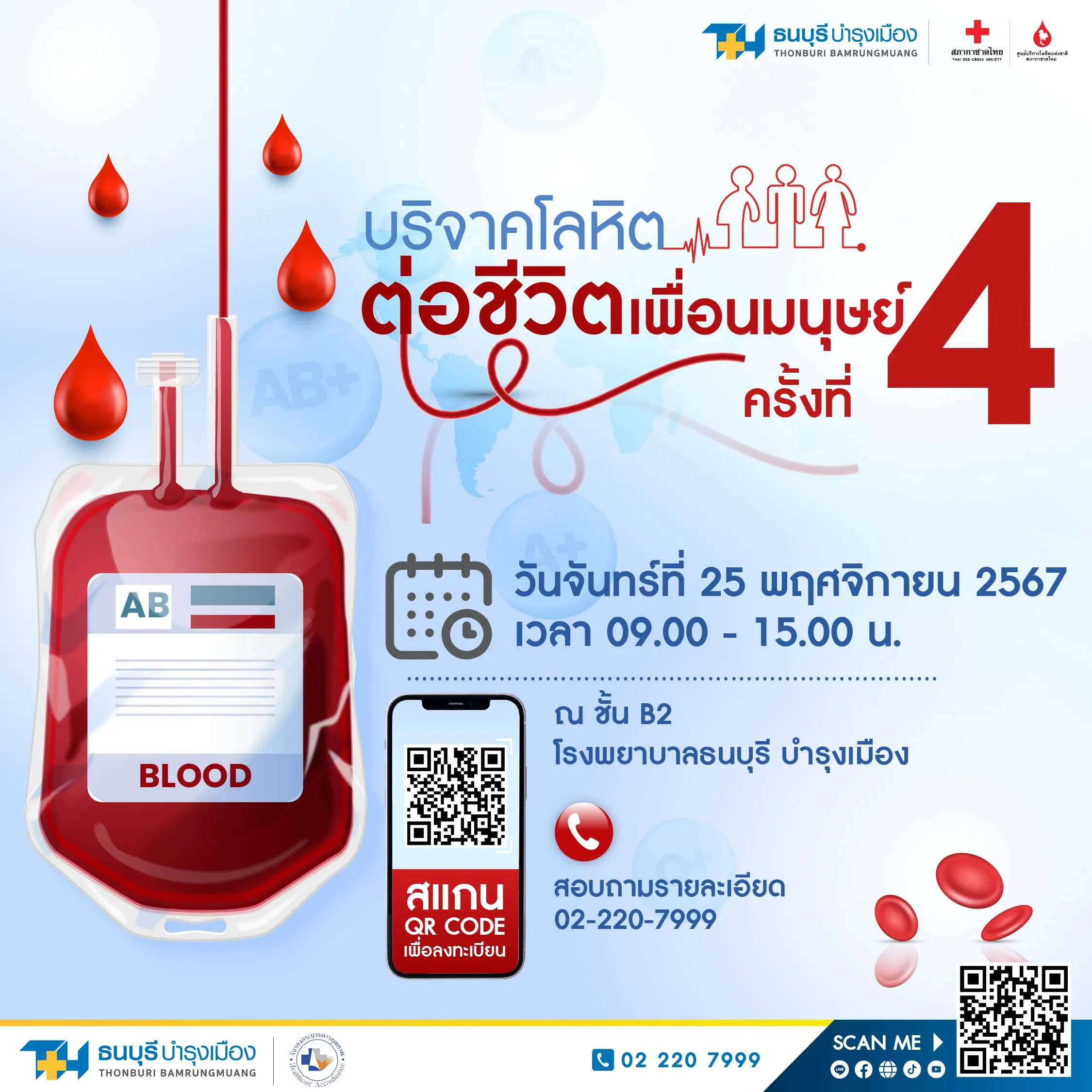 Join Thonburi Bamrungmuang Hospital on our 4th blood donation drive, an opportunity to make a difference and save lives.