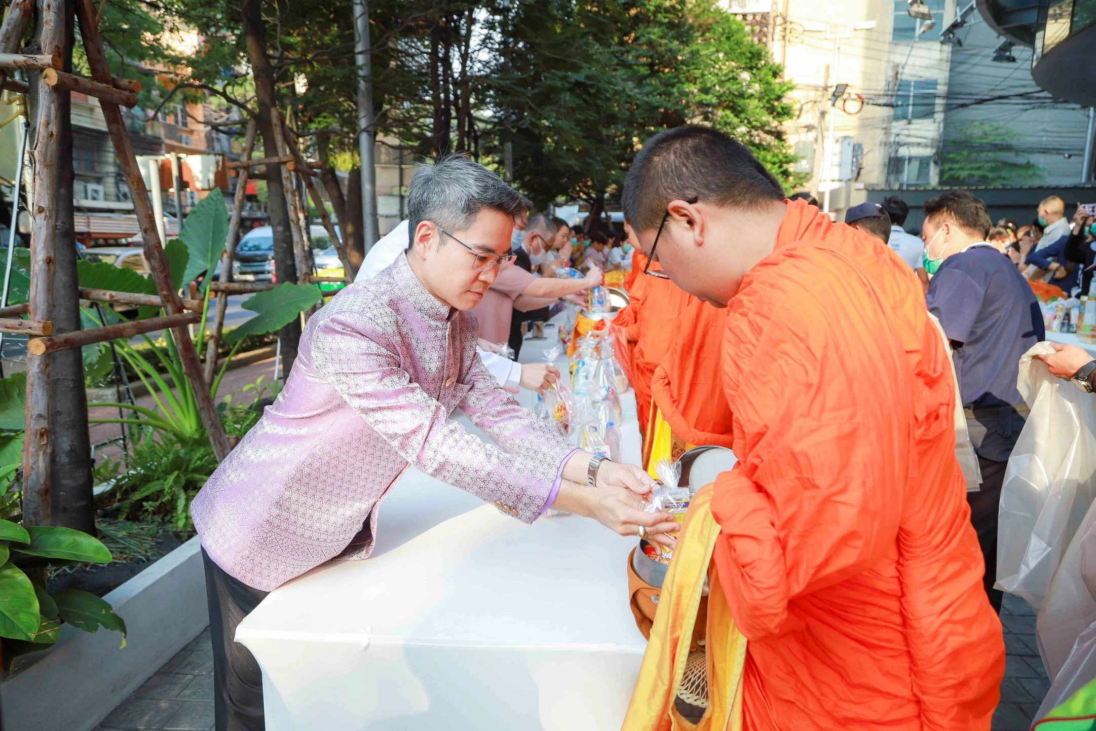Led by Dr. Thitipong Nantapiwat, Chief Executive Officer, along with the hospital’s management team and staff, the celebration included a merit-making ceremony with 19 monks from Wat Sra Kaeo Rajwaravihara (Phu Khao Thong) at the first-floor courtyard, and offering alms and traditional Thai meals at the Ruen Thai building.
