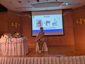 Participants were encouraged to ask questions regarding personal health concerns, and practical demonstrations were provided to help employees manage joint and muscle pain effectively.