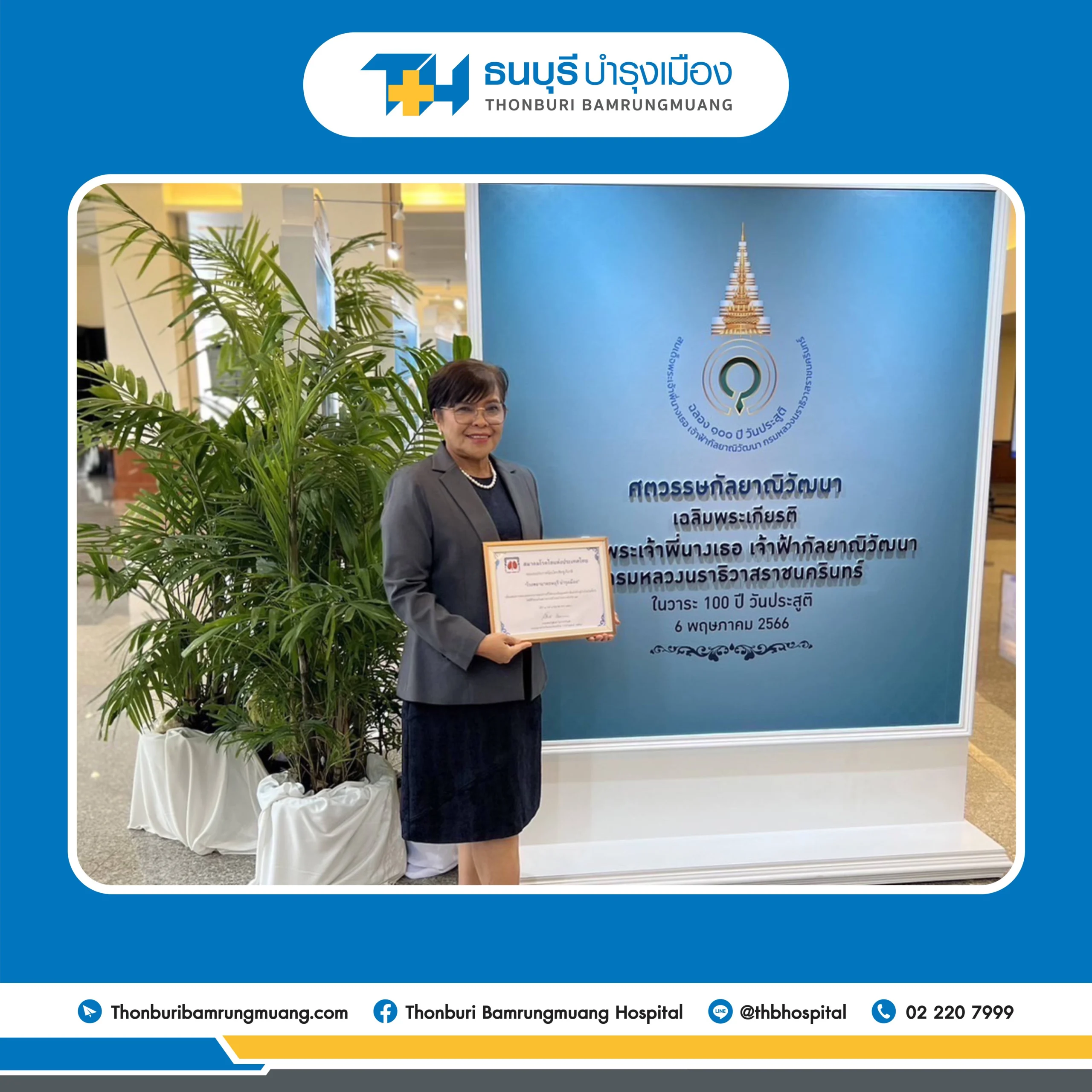 The award ceremony took place on Saturday, August 5, 2023, at Room 1, Peace International Convention Center, Royal Cliff Beach Resort, Pattaya, Chonburi Province. This honor reflects the hospital’s commitment to community care and its dedication to supporting patients in need, even during challenging times.