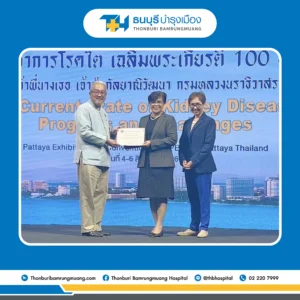 The Thai Kidney Association recently presented a certificate of appreciation to Thonburi Bamrungmuang Hospital in recognition of its contributions to public health. The hospital has actively supported the provision of dialysis treatments for patients with chronic kidney disease during the COVID-19 pandemic.