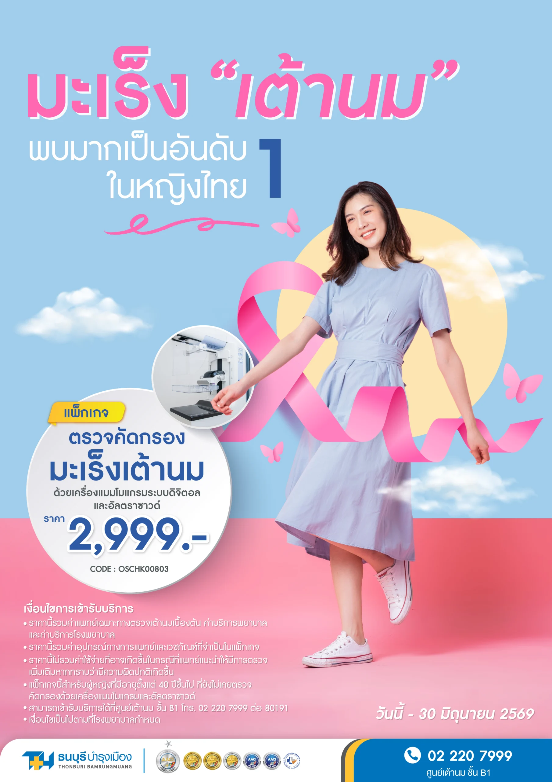 - ราคานี้รวมค่าแพทย์เฉพาะทางตรวจเต้านมเบื้องต้น ค่าบริการพยาบาล และ ค่าบริการโรงพยาบาลเรียบร้อยแล้ว