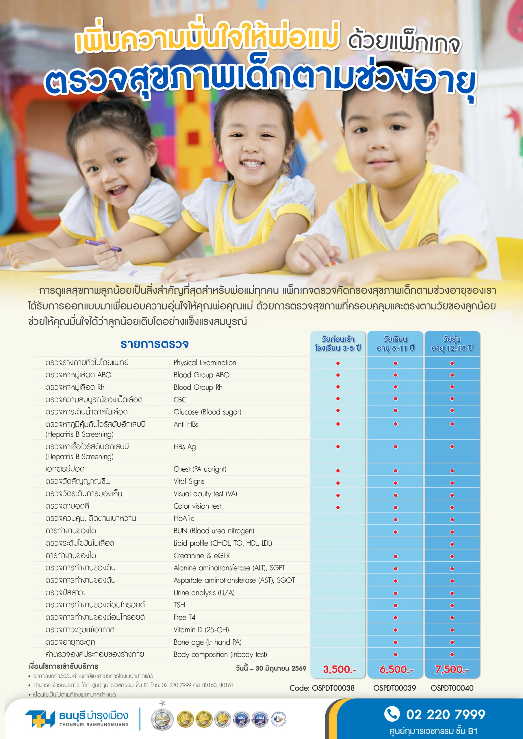 แพ็กเกจตรวจคัดกรองสุขภาพเด็กตามช่วงอายุ