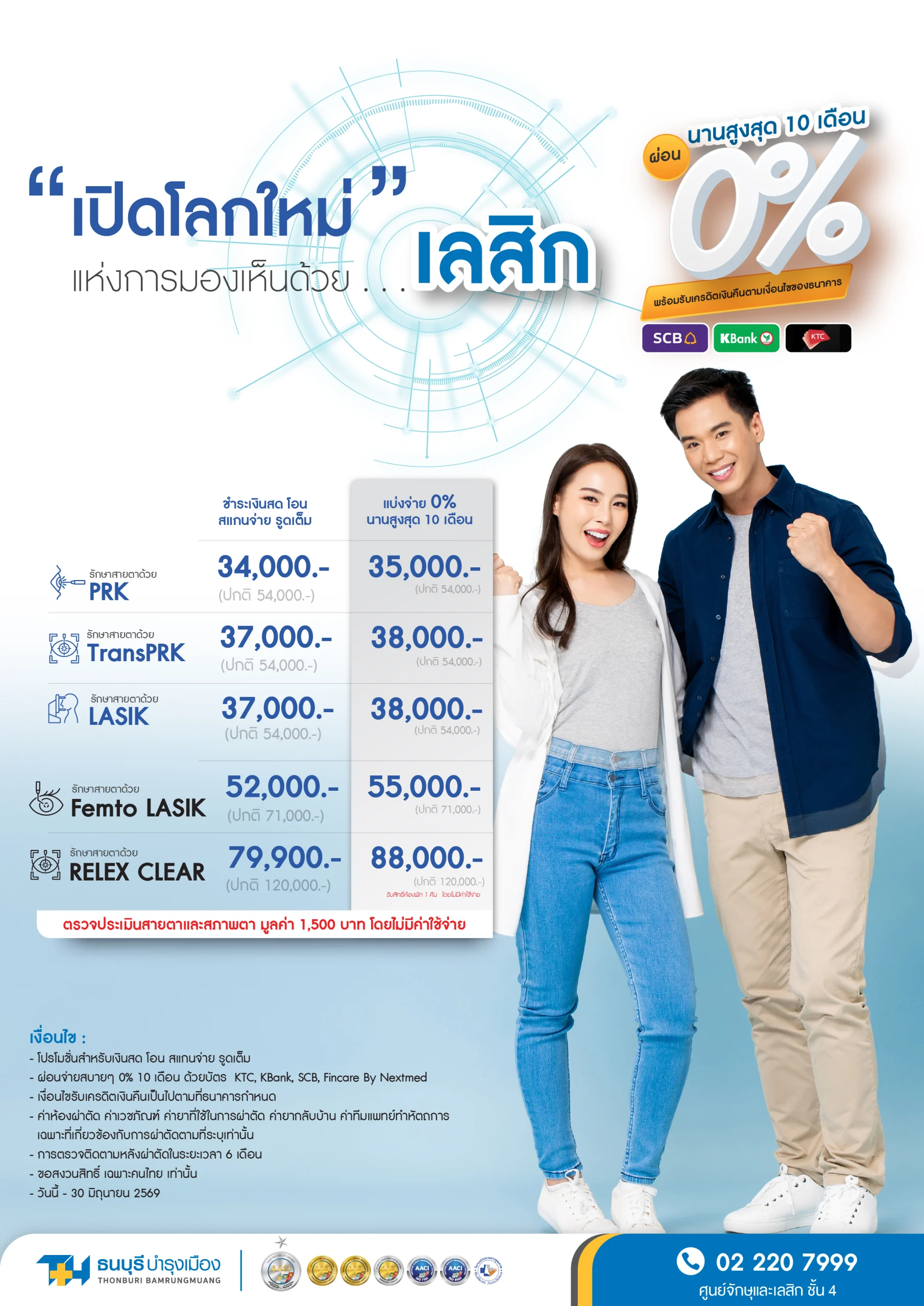 โปรโมชันเลสิก 2569 ผ่อน 0% สูงสุด 10 เดือน + ตรวจประเมินฟรี