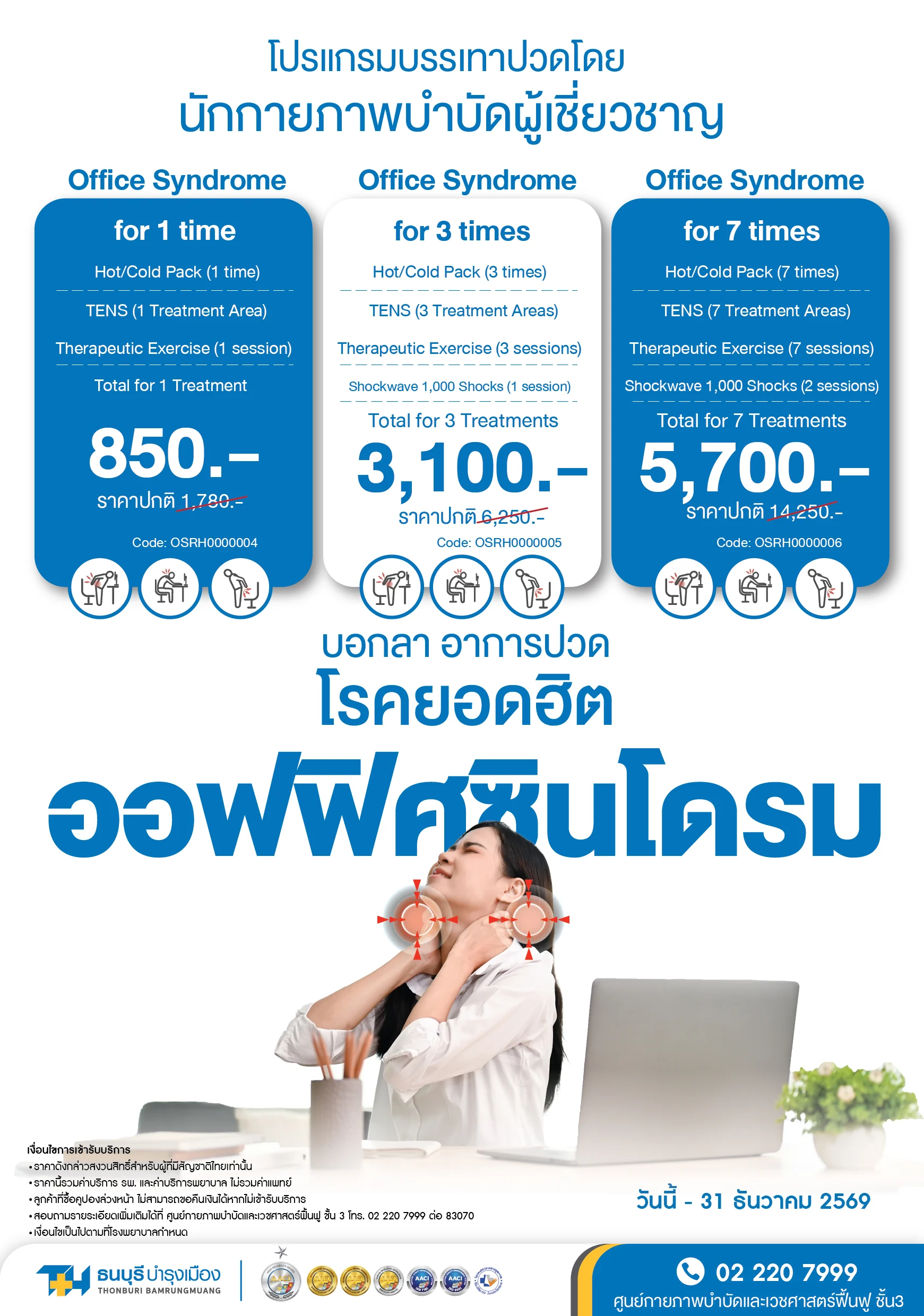 - ออฟฟิศซินโดรม 3 ครั้ง ราคา 3,100 บาท