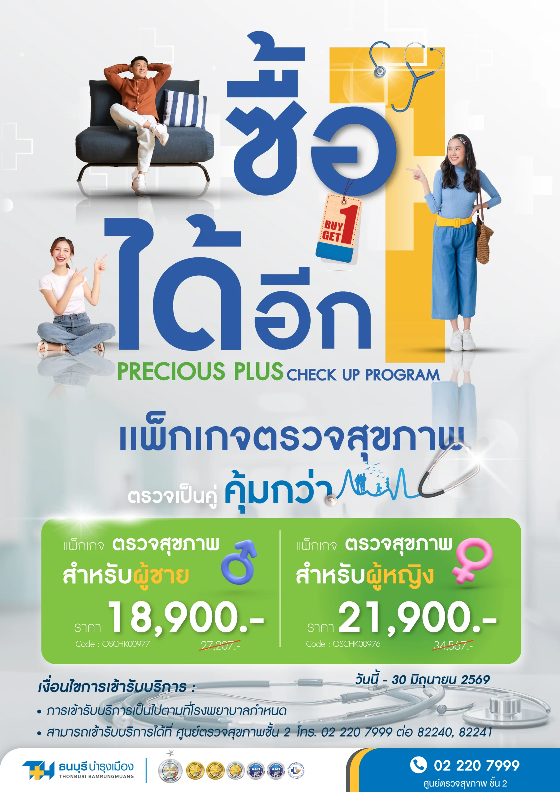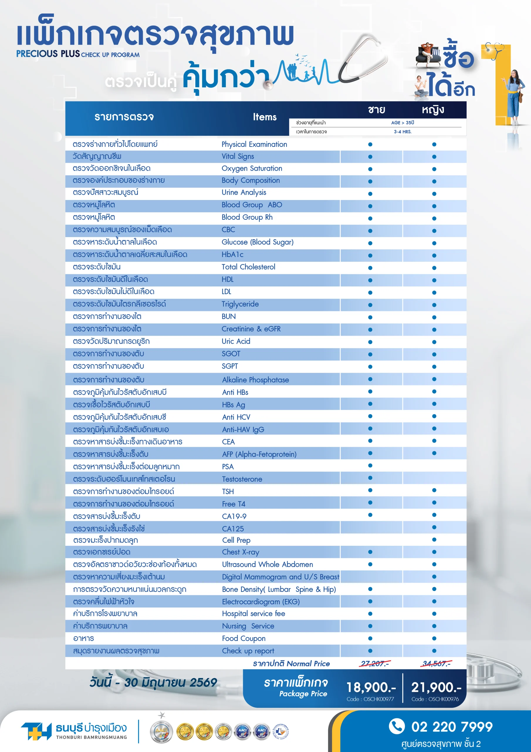 - รายการตรวจเพิ่มเติมจากแพ็กเกจได้รับส่วนลด 10% ยกเว้นค่าแพทย์ ค่าทันตกรรม