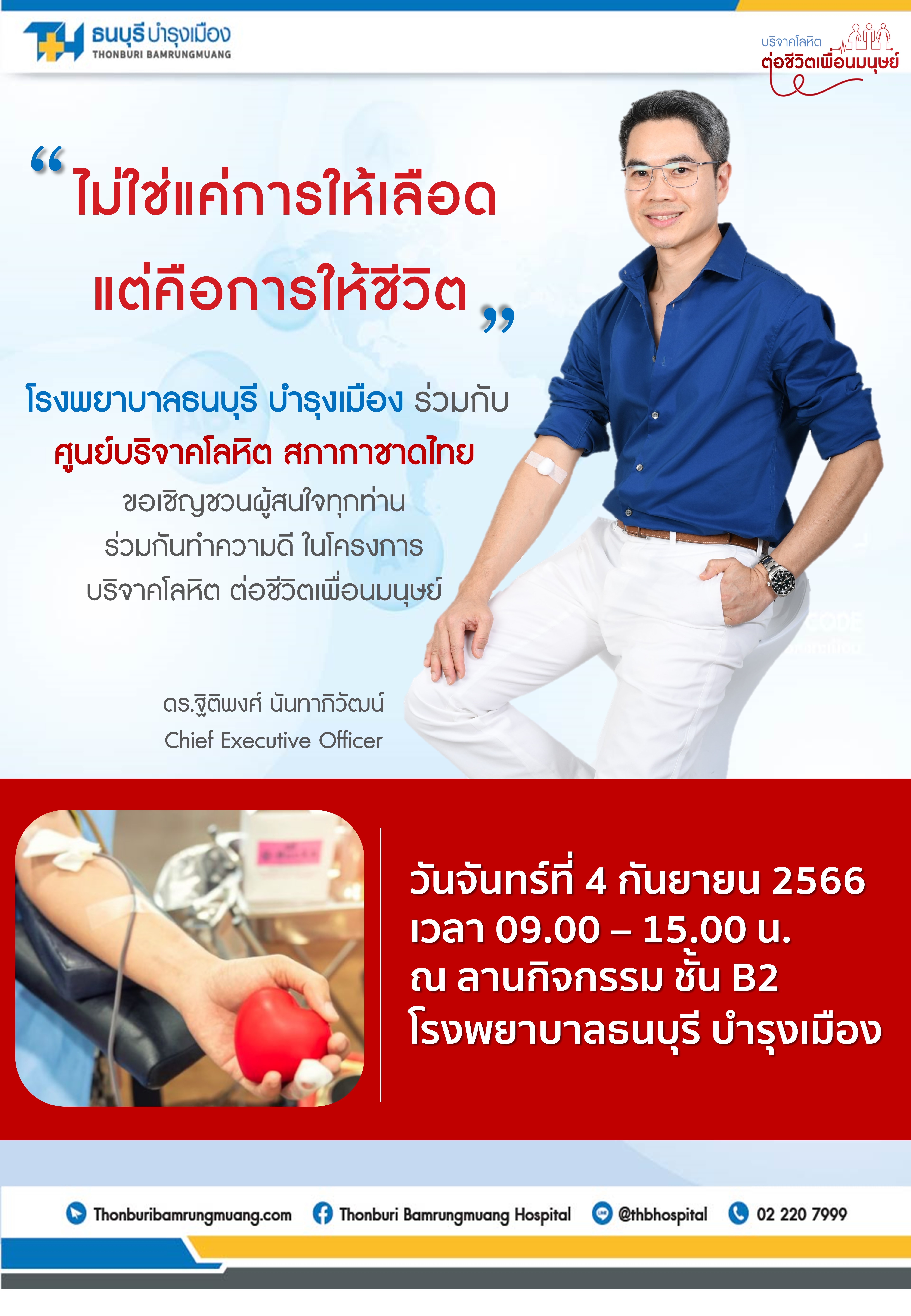 โรงพยาบาลธนบุรี บำรุงเมืองขอเชิญทุกท่านมาบริจาคโลหิตเพื่อต่อชีวิตเพื่อนมนุษย์ 💉🩸