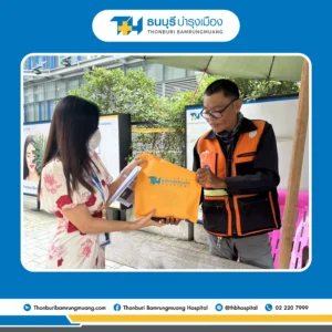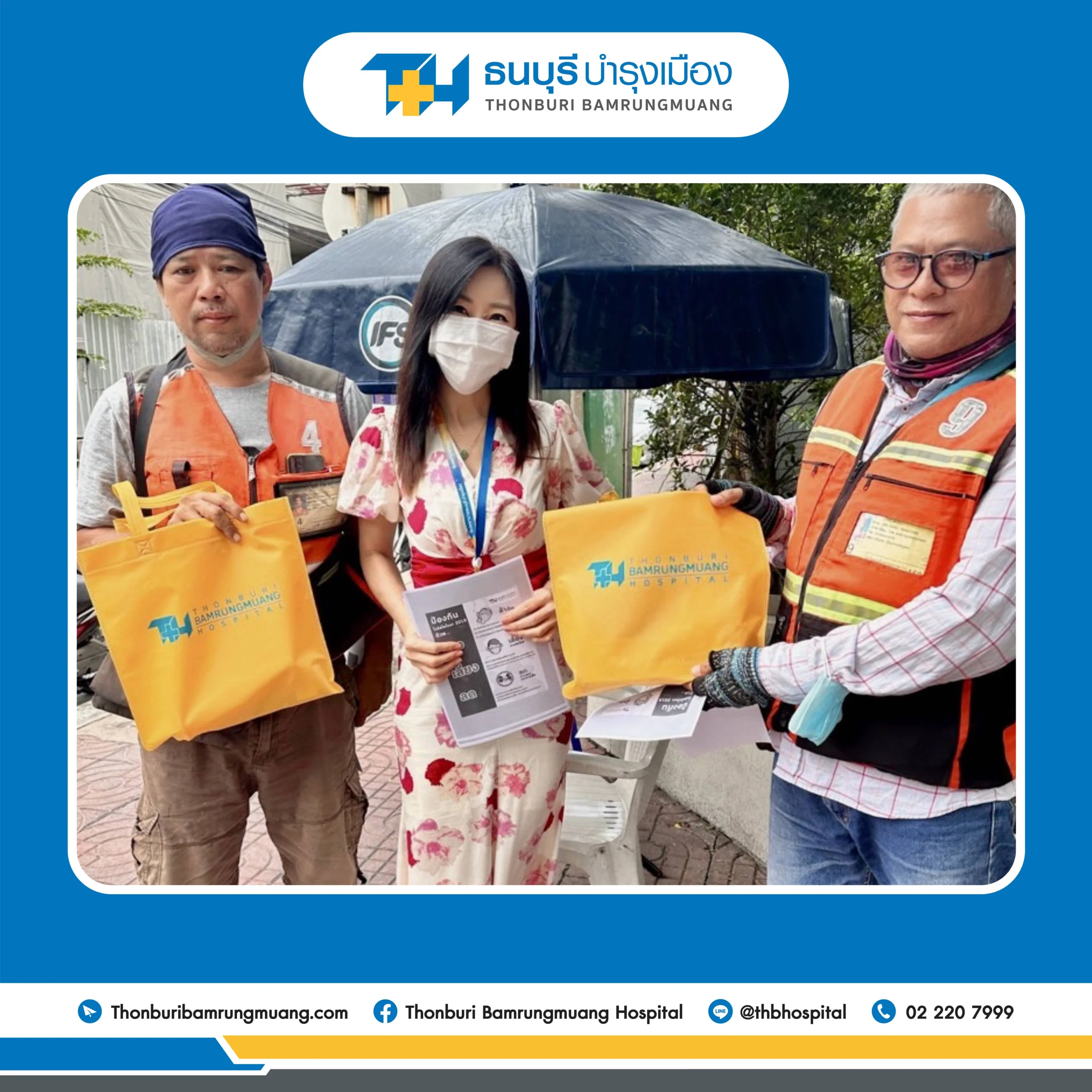 ข่าวและบทความ ข่าวสารองค์กร โรงพยาบาลธนบุรี บำรุงเมือง มุ่งมั่นที่จะมีส่วนในการสร้างเสริมสุขภาพคนในชุมชนโรงพยาบาลธนบุรี บำรุงเมือง มุ่งมั่นที่จะมีส่วนในการสร้างเสริมสุขภาพคนในชุมชน แชร์ โรงพยาบาลธนบุรี บำรุงเมือง มุ่งมั่นที่จะมีส่วนในการสร้างเสริมสุขภาพคนในชุมชน โดยเริ่มจากชุมชนโดยรอบโรงพยาบาล (วัด โรงเรียน ประชาชนในเขตพื้นที่ ป้อมปราบศัตรูพ่าย) ไปจนถึงชุมชนอื่นๆ เพื่อป้องกัน สร้างเสริม และฟื้นฟู นำสุขภาพที่ดีสู่ชุมชนวันอังคารที่ 22 สิงหาคม 2566 ที่ผ่านมา ฝ่ายภาพลักษณ์องค์กรและกิจกรรมเพื่อสังคม (Corporate Image & CSR) จึงได้จัดกิจกรรมให้ความรู้พื้นฐานในการดูแลตัวเองเพื่อป้องกันการติดเชื้อและการแพร่ระบาดของเชื้อ โควิด-19 พร้อม มอบถุง “ปันน้ำใจ” ให้กับพี่ๆ มอเตอร์ไซค์รับจ้าง ประชาชนทั่วไป และร้านค้า ในบริเวณพื้นที่โดยรอบโรงพยาบาล เพื่อวางแผนที่จะสร้างเสริมสุขภาพที่ดีสู่ชุมชนอื่นๆ ในกิจกรรมต่อๆ ไป Call Center : 02-220-7999 แผนที่โรงพยาบาล : https://goo.gl/maps/MLhJk7KpYKbcWf8b9